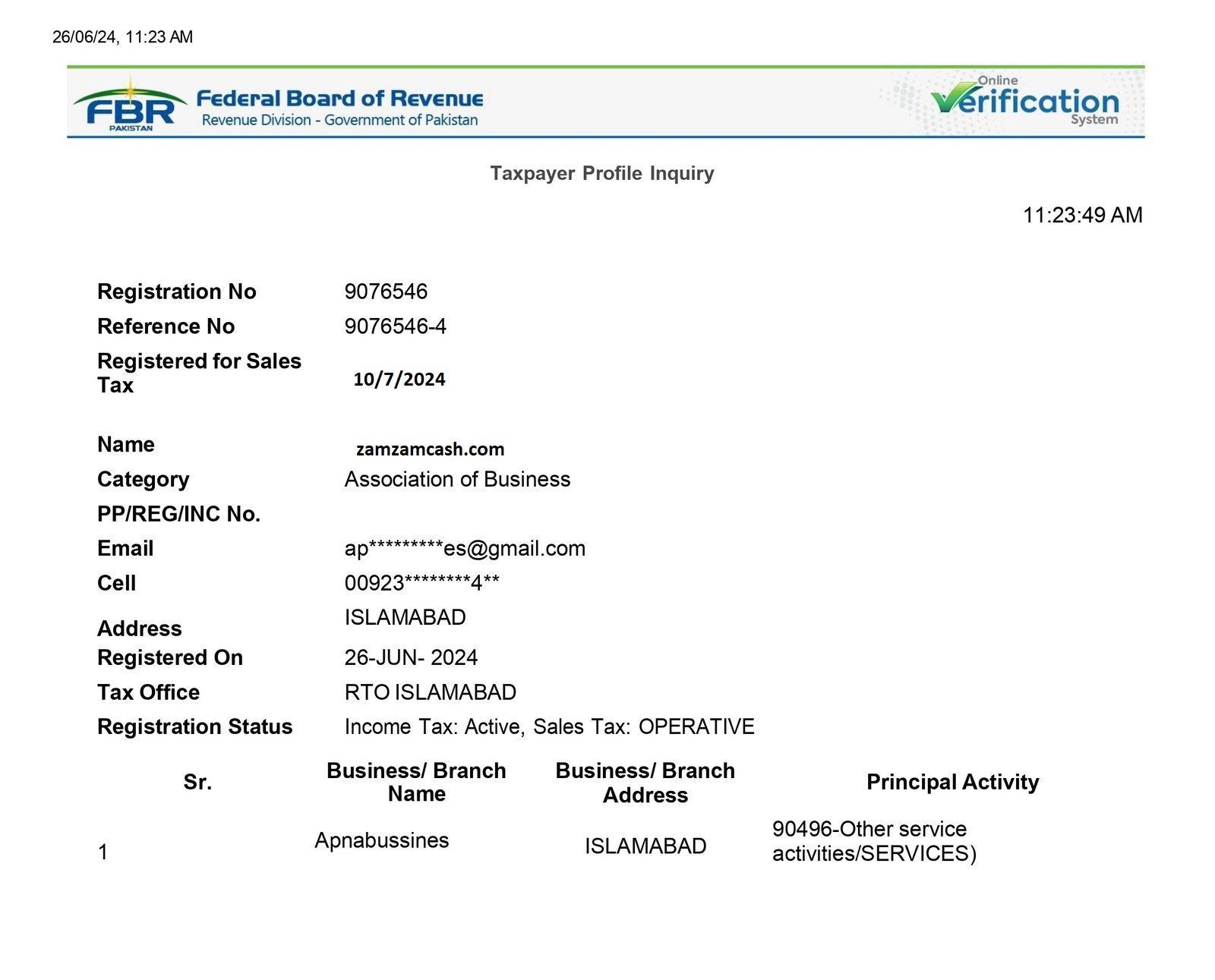Zamzamcash is world famous investment platform Legally approved by FBR and SECP and scamadvisor. You can check also scamadvisor trust score.